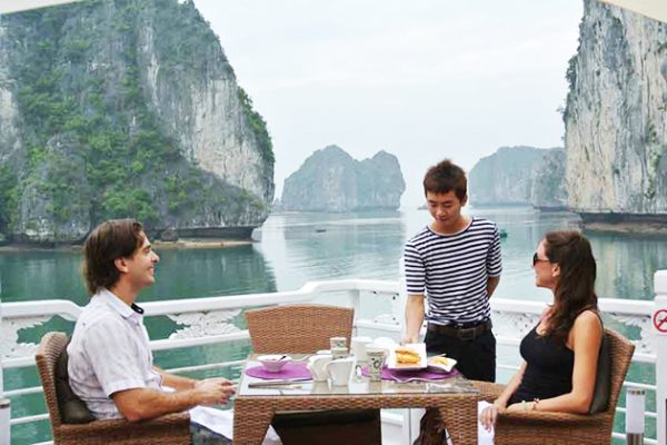 We check-in cruise, enjoy a welcome drink and cruise briefing; and then have lunch while cruising in the magnificent Bai Tu Long Bay, admiring the fascinating rock formations in the bay. Our activities this afternoon are swimming in the crystal clear water, exploring the secluded Thien Canh Son cave, relaxing on a white sandy beach at Hon Co Island, or kayaking. End of the day, we relax on the boat and have dinner. Overnight on the cruise.